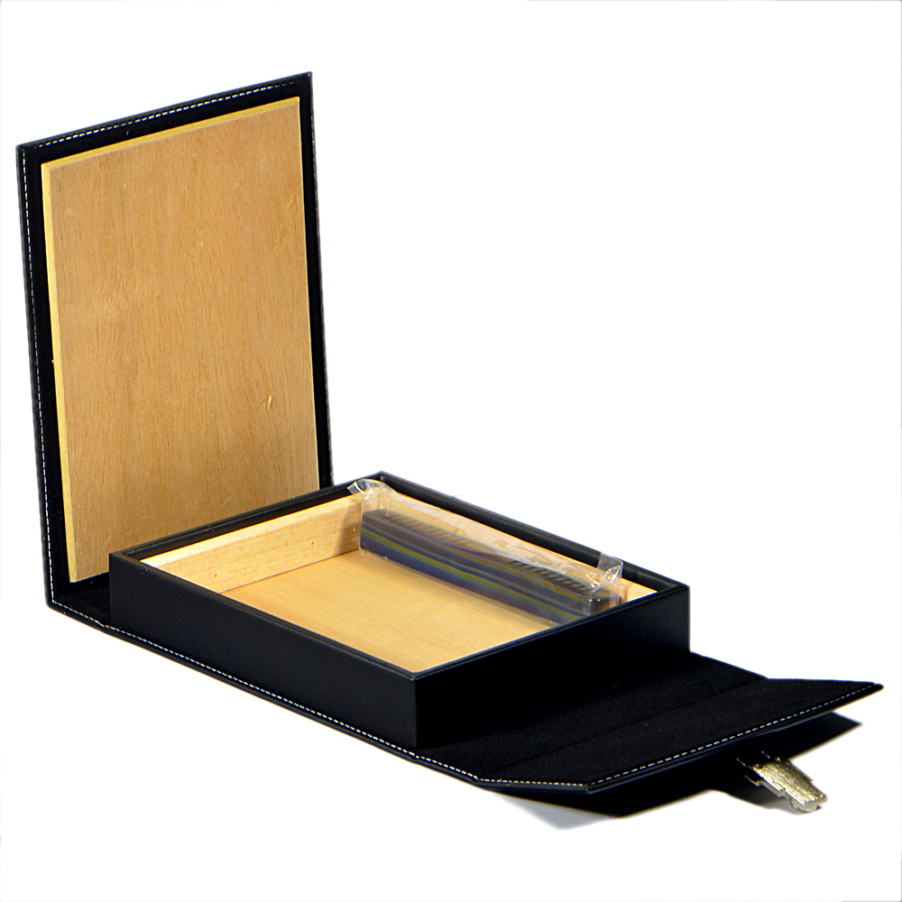 " Florence " - привлекательный дорожный хьюмидор, изготовленный из высококачественной черной кожи, котрастная белая прострочка подчеркивает его индивидуальность.