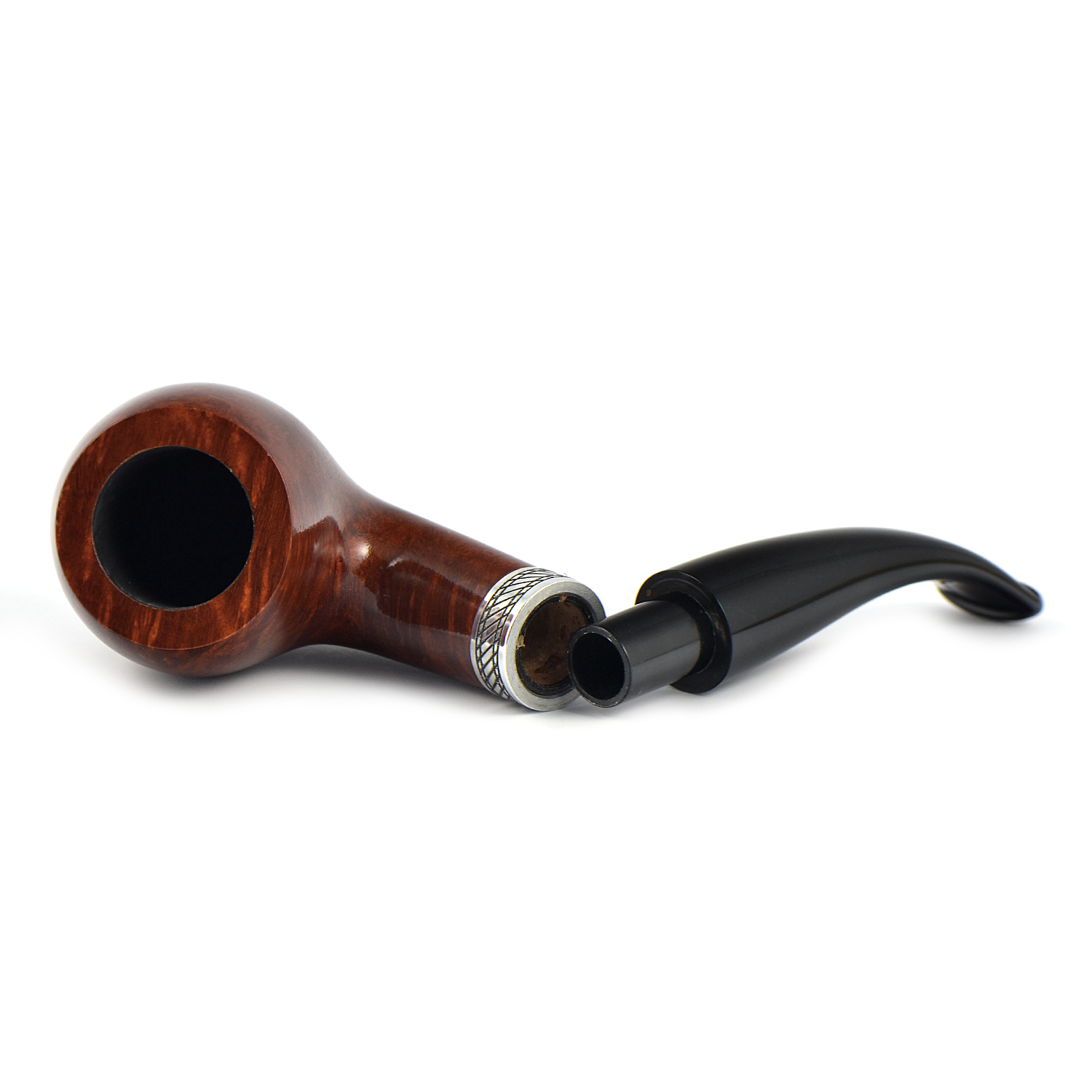 Теплый шелковисто-коричневый цвет чаши с кольцом серебристого цвета, узор из линий которого выгравирован вручную.