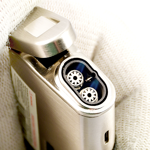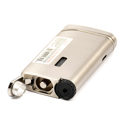 Прочная зажигалка с двойным турбопламенем, в изящном корпусе, также встроен пробойник для сигар.